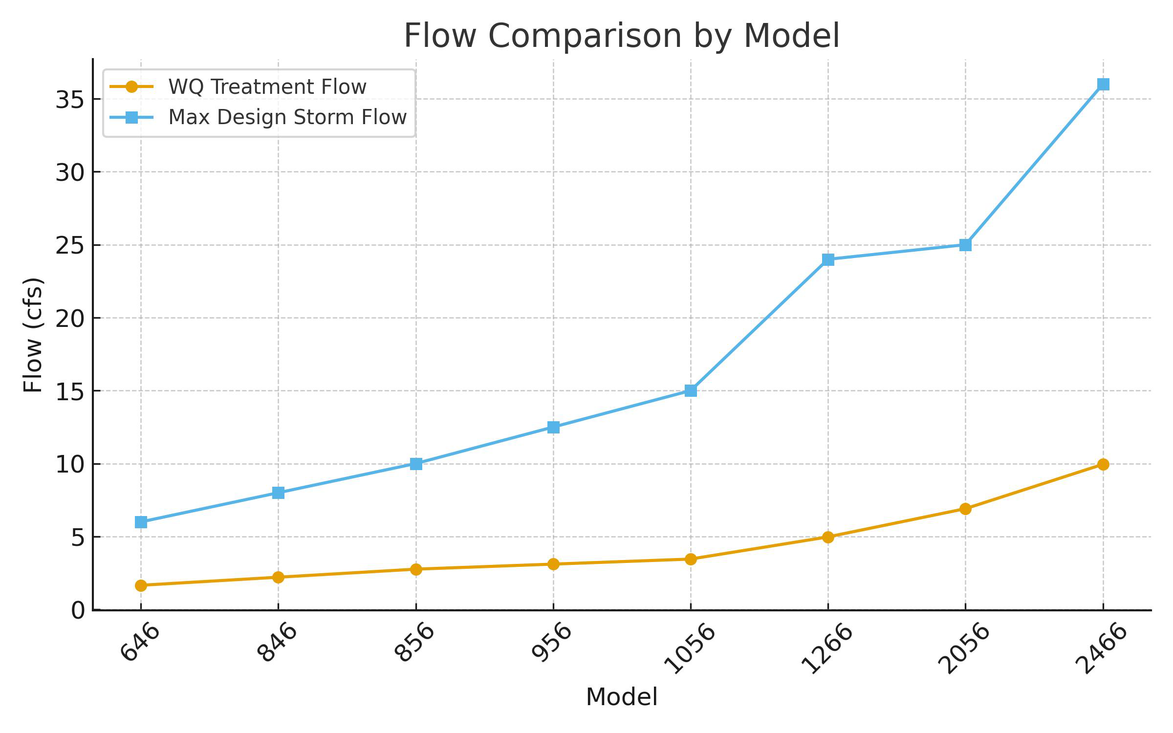 This chart can give you a general idea of the CrystalClean model you may need, but please let our staff help you determine the correct device for your needs by filling out our design form. There is never a charge for our design work or consultation, and often we can help you save time and money by taking the time to look at your overall drainage design.